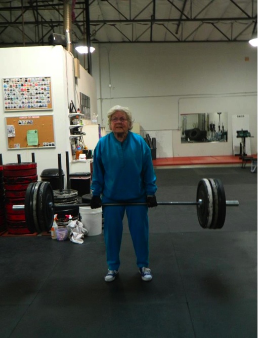 For example, here is a pic of Jean. She is 82 years old and can dead-lift 153lbs!!! If she can do it, so can all of us!