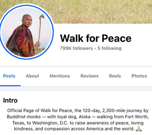 But circling back to these dedicated to Peace walking Monks and their four-legged companion, what impressed me is how welcomed they’ve been throughout their journey — in person and on Social.