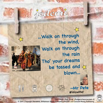 And me, being the music guy I am, it struck me like a V-8… the inspirational song “You’ll Never Walk Alone” fits perfectly!