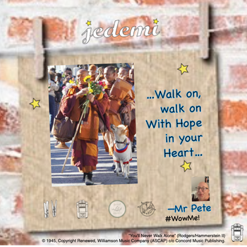 But circling back to these dedicated to Peace walking Monks and their four-legged companion, what impressed me is how welcomed they’ve been throughout their journey — in person and on Social.