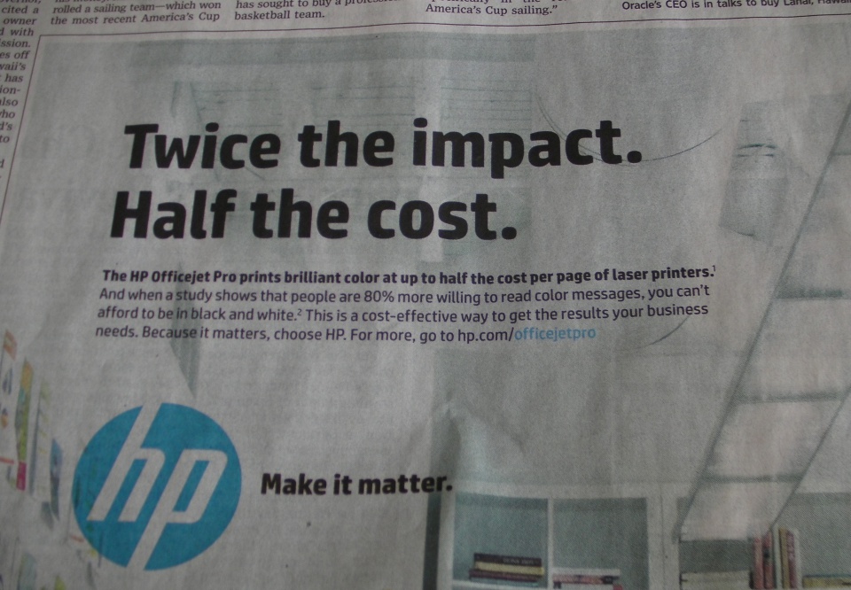 While perusing The Wall Street Journal, I came upon one of HP’s new “Make it matter” ads with the headline:
