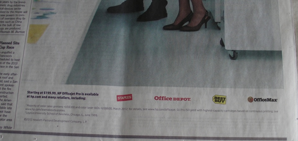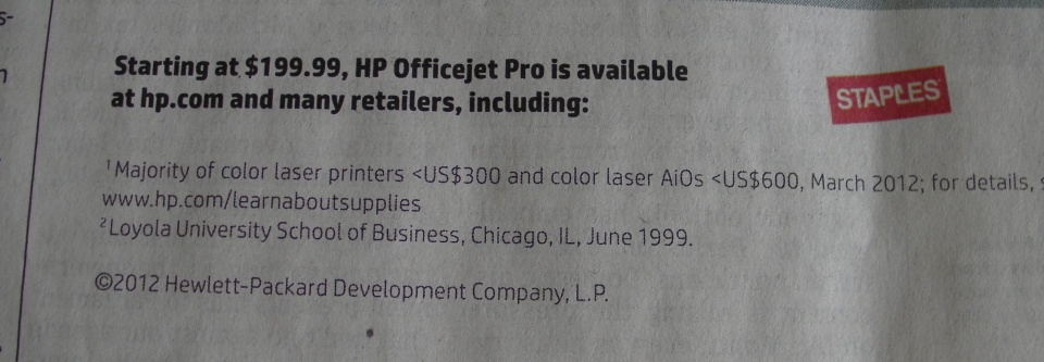 I’m guessing that HP was hoping people would just notice the printer and the logos of where to buy, and NOT stop to read. This is some of the saddest copy I’ve seen in an ad in a long time.