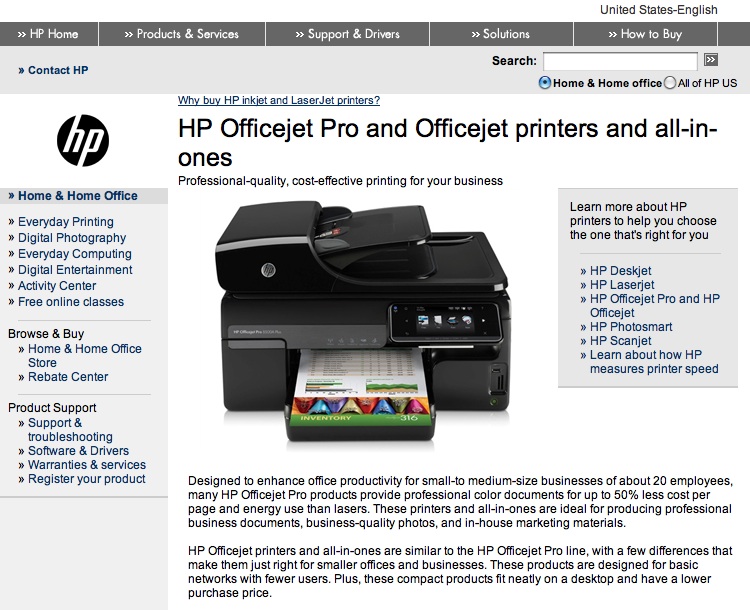By the way, that link takes you to a product page for HP Officejet Pro and Officejet printers and all-in-ones.