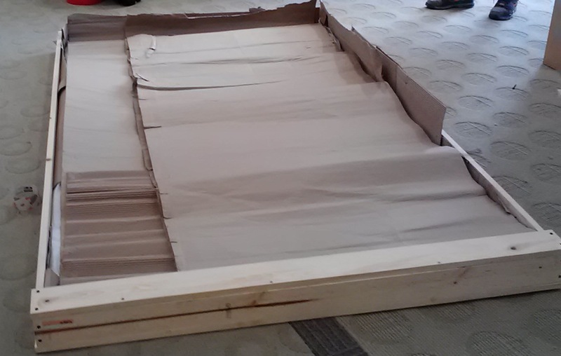 Step 5 – Use the longer pieces of cardboard covering to pad the top of the board.