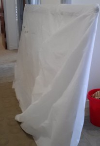 Step 9 – Lean encased TouchIT board onto Sliders (The Container Store) and push into the office for temporary storage.
