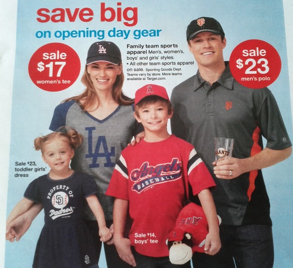 Our other Bay Area team, the one of “MoneyBall fame,” was left out of the picture. Instead, we have representatives of the southern part of the state. So what’s the deal? Are they saving money by doing one photo shoot to cover all the Target stores in California? Dissing the A’s was not a good move.
