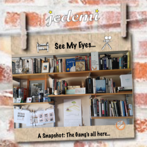 On the screen were several snapshots of the books lining her office.