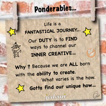 Life is a FANTASTICAL JOURNEY… our duty… is to find ways to channel our INNER CREATIVE… we all have this innate creative… gene if you will… And the cool thing is as we bond with this inner creative there’s this thing… INGENUITY that happens… You conjure up solutions and the like… so you can continue on your journey… I call them end-arounds… Like the Hans Solo effect — a challenge is encountered and you like think… I’ll figure out something.