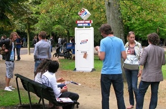 UPDATED: These days, it seems like every marketing campaign is heavy on social networking aspect (i.e. Twitter, Facebook tie-ins) since that’s what’s perceived to be “in.” I guess that’s why I found this approach by Domino’s Pizza in the Netherlands especially refreshing. It’s very visual and very much in line with where its hungry audience may be, which often times is not at home or near a food concessionaire.