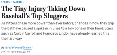 Funny THIS appeared in the Wall Street Journal… a piece about the spate of hamate injuries? Go fig!