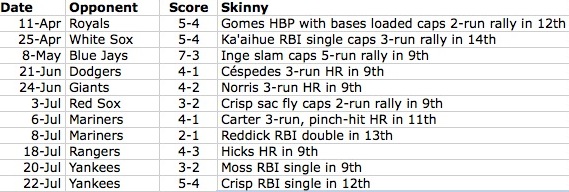 The Oakland A’s have been playing some exciting baseball. Yesterday they notched walk-off win number 11. It is a nice streak and, if anything, the A’s have internalized the “Gotta Believe!” spirit.