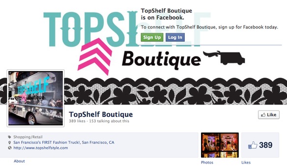 According to the description on her Facebook page, TopShelf is San Francisco’s first boutique on wheels offering what mainstream retailers cannot: a handpicked inventory of women’s hip and unique pieces at affordable price points. It caters to fashion forward women who relish in creating their own personal style over wearing a mass produced brand name.