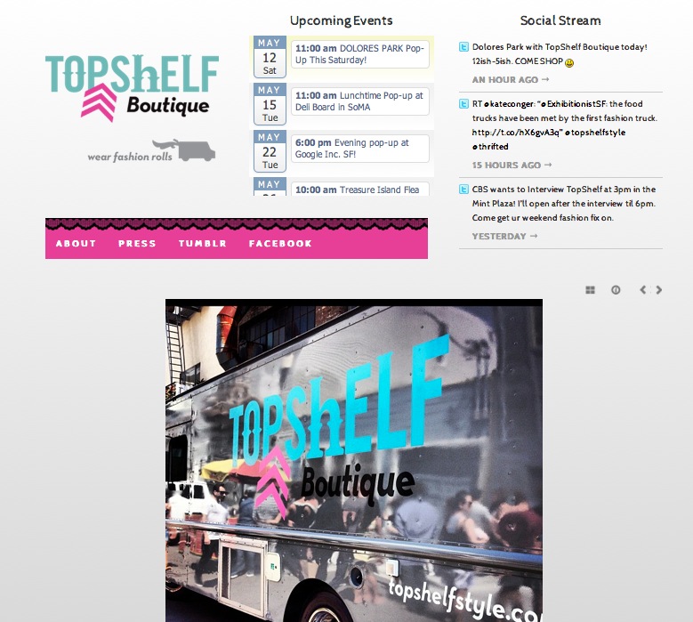 The article mentioned Topshelf Boutique (http://topshelfstyle.com/). Founded by Christina Ruiz, her fashion truck had its debut Urban Air Market in Hayes Valley.
