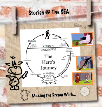 A new SLIDE shows the ALLIES from the cartoon in the context of THE HERO’S JOURNEY.