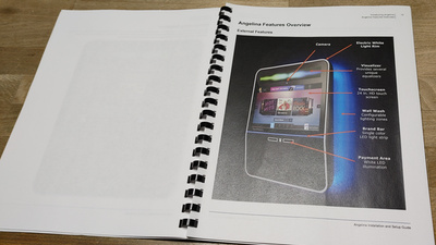 Before he can answer, she scans the documents (TOUCHTUNE GUIDE).