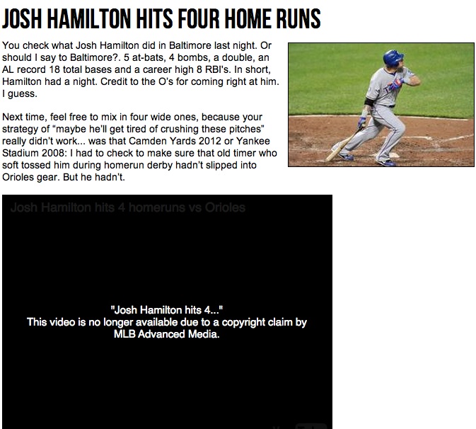 So I guess, “fair use” is only fair if you embed the video from MLB.com. All other sources are off limits.