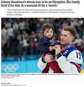This piece about JOHNNY HOCKEY wanting to make the OLYMPIC TEAM and getting his Dad to drive from AVALON to wherever they could get RINK TIME, resonated. Nothing is easily gotten to from THE SHORE in the SUMMER — probably 90-min to two hours easily. WOW! His Dad, described in the article as “his first coach” took him (and most likely his brother Matty I think) and they worked on GETTING BETTER or as I say to this day… CONTINUOUS IMPROVEMENT… it’s a MINDSET as well as physical training.