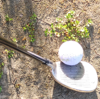 He positions himself and after a few practice swings, he puts a solid hit on the FLOPPY.