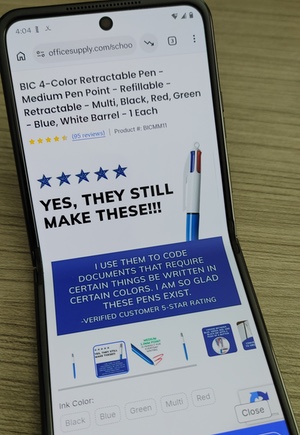 Got that right… Not the company furnished BICs and CLICKY ballpoints…
